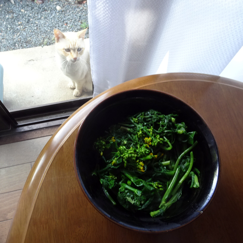 日向ぼっこしていたノツコ 何だ何だと窓の外から覗いています。