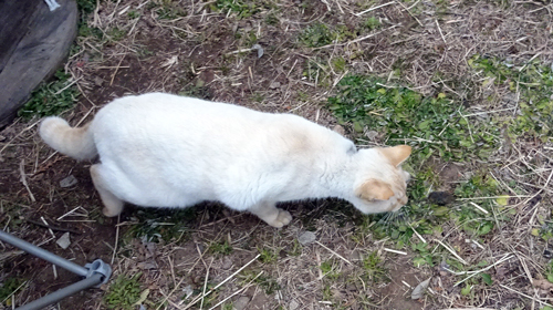 ノッコが遊んでいる。相手は小さなネズミ(マウス) 近くに寄らないと見えない程小さい。