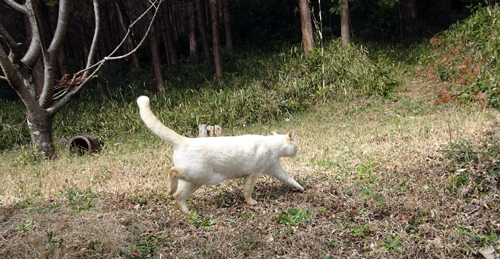 ノッコは、縄張り内をパトロールしつつ、遊んでいます。最近は縄張りが狭くなり、何回も、家へ入ったり出たりです。
