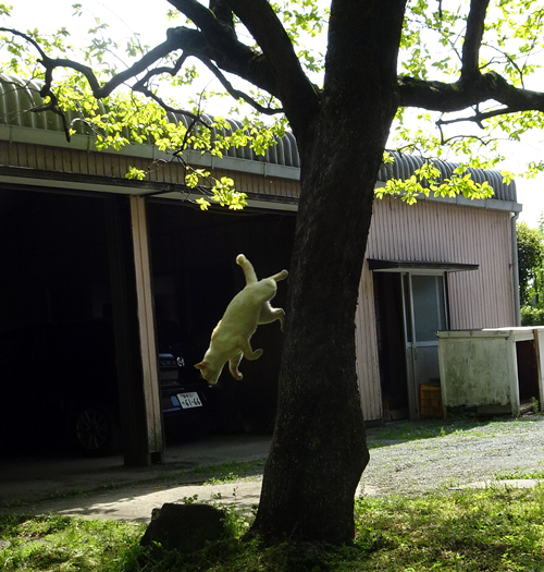 ノッコの身体能力は凄い。今 新緑のカキの樹に登るのが好き。誰も見ていない時は登らないが、下で見ていると気に一気に登り、細い枝をあちこち動き、樹から降りる時は、一気に直滑降。いつ見ていても、ネコ 登るのはたやすく、降りる時は慎重に、大胆に飛び降りる。