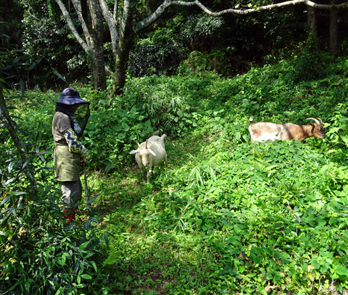 ヤギは、食欲旺盛。外食ウメエ~