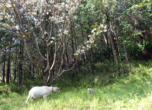 サクラの下で、ヤギ 駆ける。
