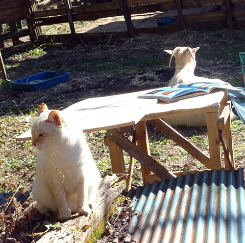 ネコのノッコも一緒に居る。ご主人が居るので安心して、皆と一緒に居たいのです。本を読みながら見守りました。