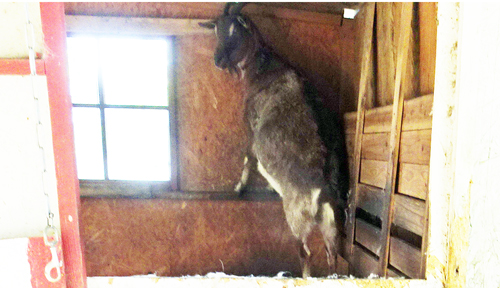 めでたい祭りも、ヤギにとっては受難の日。雨苦手、大きな音も苦手。祭りには花火はつきもの。祭礼の時間を知らせる、号砲。そして、打ち上げ花火。どちらも音は、半端じゃない。大音量が響き渡るたびに、ビックリ、パニック。精細なジュンは、室内に飛び込み、隅で固まっています。