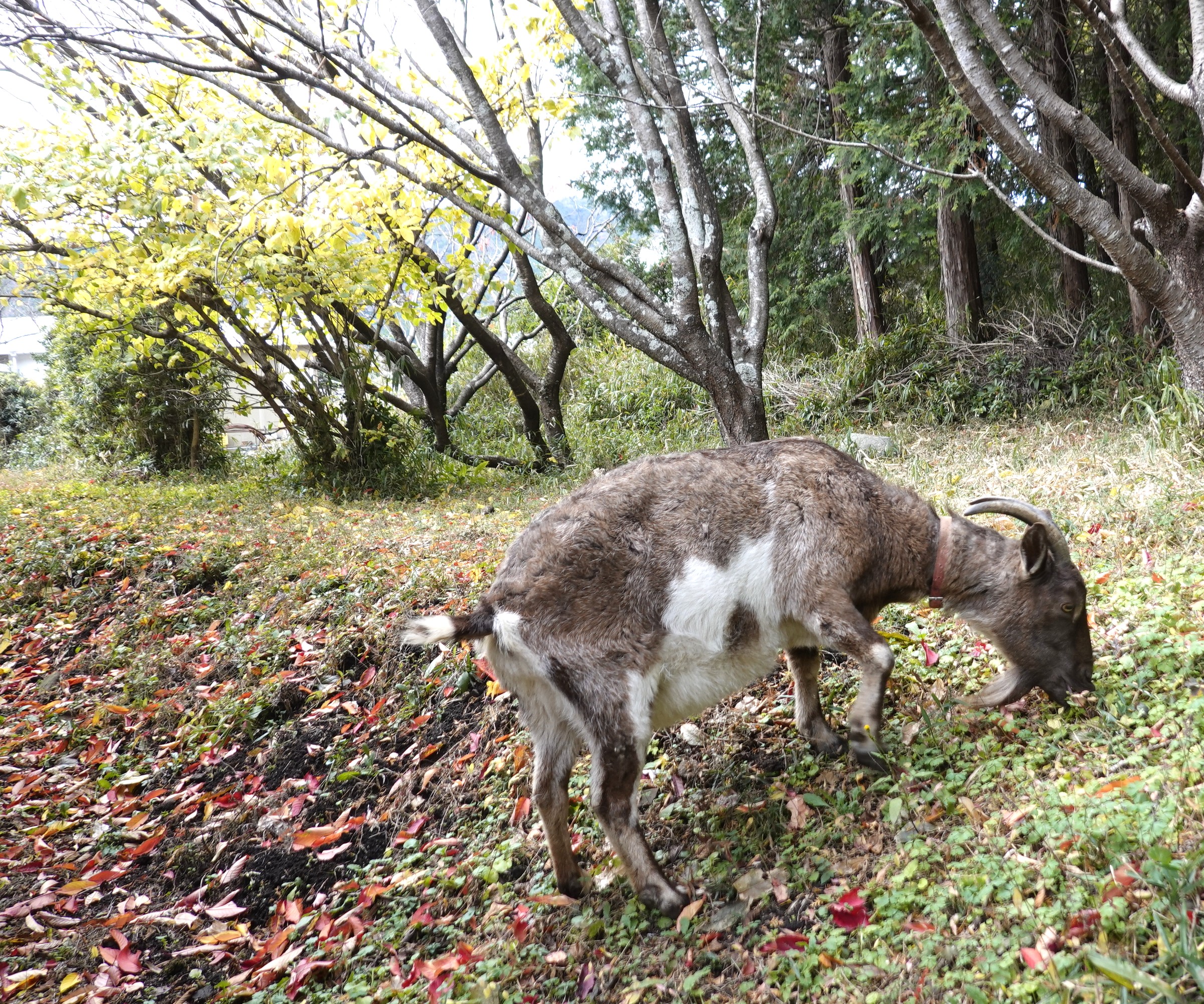 ジュンは、楽しそうに落ち葉を食べている 草だけでなく 枯葉も大好きです