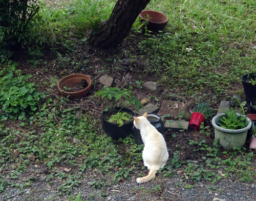 雨間にパトロールして、30分ほどたってミャーとあいさつして帰宅。全身というか、毛はびしょぬれ。こちらにスリスリしてくるので、こちらはタオル代り。ノッコもパトロールで安心し、朝食を食べ朝寝しています。