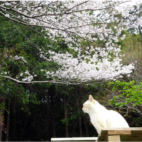 サクラとサクラネコ 目を閉じて、うっとり