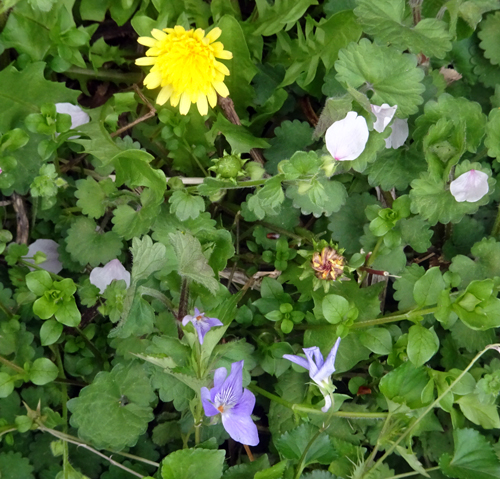 花びら 落花して緑の草の上に