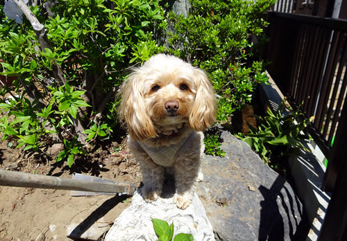 連休初日朝 街なかを散策していると、イヌが吠えている。とりあえず吠えているが、シッポふりふり。飼い主のおばあちゃん 草とりしながら、悪いね、人を見ると吠えるんだよと言いつつ、愛犬をかまってくれる人に嬉しそう。