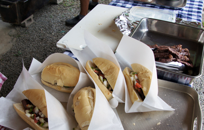 シェラスコサンドは、ロベルトさんのお店 炭火焼きのビーフは香ばしく