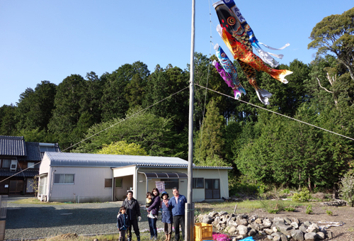 ・Y太 毎年行事ですので、のぼり立てに積極的参加。自分のコイがどれか