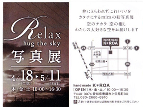 知人のmicaさんの、写真展 Relax -hug the sky-