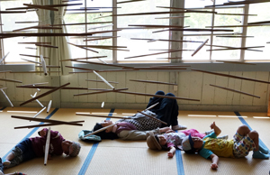 新美清彦さんの、木製モビール 作家曰く、寝て仰ぎ見てください。
