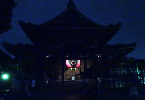 豊川稲荷 いつも昼間参拝ですが、懇親会の前に散策。今の時期の午後6時30分は暗い。本殿の大提灯の灯りだけが、周囲を照らしていました。