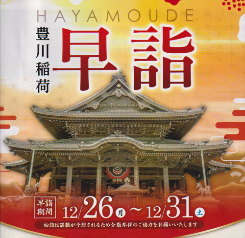 30日ウオーキングがてら豊川稲荷参拝。今正月前の、早詣でをPR。コラナ禍で、密を避ける分散参拝です。良い考え方です。