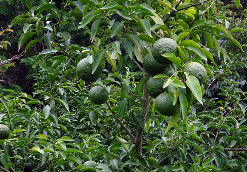 ゆずは、摘果して、います。カキも実がびっしり。今年は成り年です。