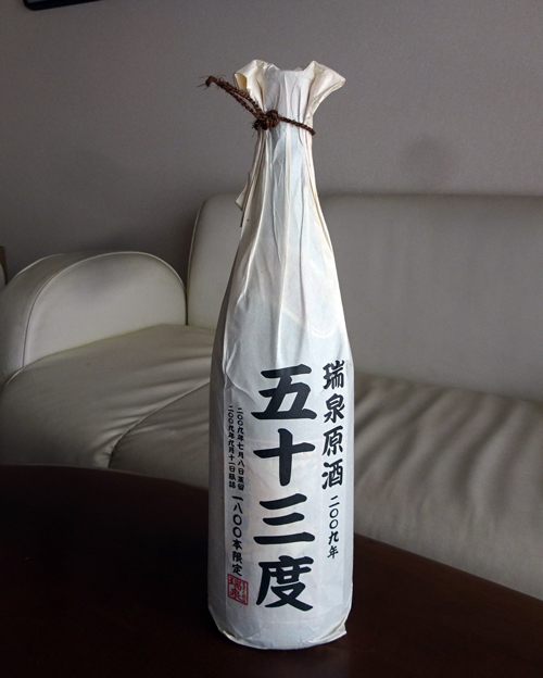 我が家のお宝に、瑞泉原酒2009年53度 1,800本限定です。まろやかに熟していく古酒づくりの為楽しみに見守っています。ただ、泡盛とは表示されず、※琉球泡盛は、45度を超えると酒税法上「原料用アルコール」と表記されます。と記してあります。