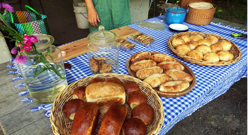 新城市鳳来の門谷小学校のカフェ爾今 新緑と風爽やか。