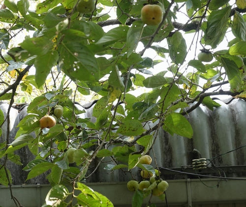 採れなかった、細い枝の先のカキがかろうじてのこった