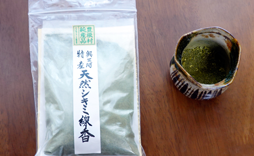 奥三河特産天然シキミ線香の、粉末状。シキミは香の木。