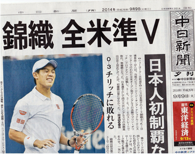 錦織圭選手が、全米オープンで準優勝しました。ライブ観戦し、優勝ならずでしたが観戦後は清々しい気持ちでした。ギャラリーも錦織選手を応援していたように感じました。