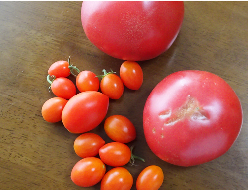 大きなトマトは、トマト専業農家の、出荷出来ないトマト。美味しいトマト生産者の評価有り、B級品でも味は同じ。美味しい。
