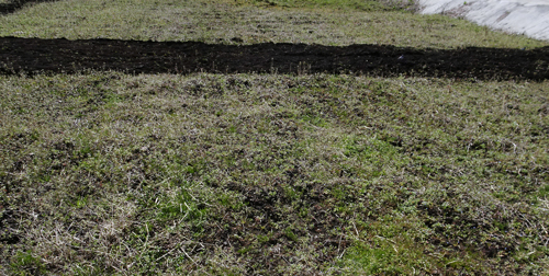 草は、これから、日々成長します。とりあえず先が見えるので、良しとしています。 耕した土には、いつもさまざまなトリが寄って来ます。