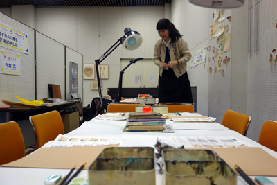 2月13日(金)~15日(日)は新城地域文化広場で、おでかけ展示。11名の作家作品を展示をしています。14日は今村文さんの、アーティストワークショップ「愛する人に贈る切り絵の押し花」を開催。タイムリー企画です。今村文さんとお話しして、作家の作品は、優しい中に緻密な宇宙があると感じました。ミュージアム展示中の作品は、蜜蝋の質感をだした大きな円形作品が、ギャラリーに射す西日により、変化します。