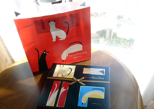 バレンタインデープレゼント。ネコ好きを承知しているので、ネコの紙袋。中には、ネコはおらず、チョコです。感謝です。美味しく食べています。
