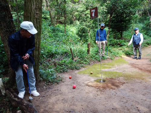 日曜日 区民マレットゴルフ大会が開催されました。マレットゴルフは、木のパターで大きな球を打つ競技で、大人も、子どもも楽しめます。山のコースですので、コースのど真ん中に木あり、根っこありで、珍プレイ続出です。