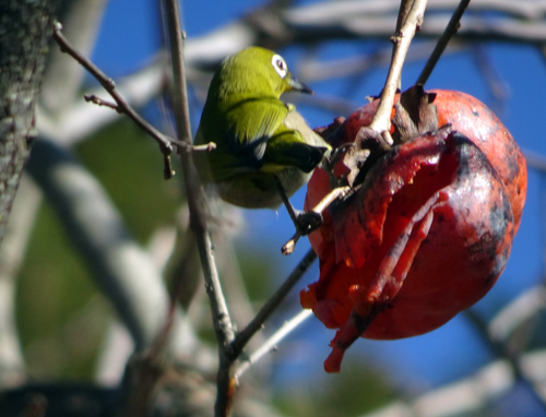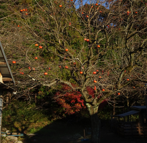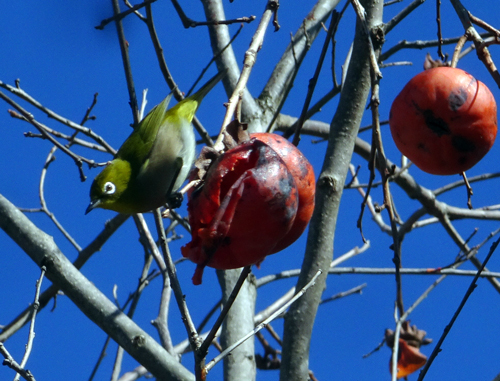 朝 庭の柿の老木に50匹以上のメジロが来て朝食 めじろ押しです。感動し、うっとりです。動きが早すぎるので撮れない。