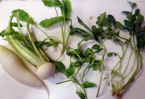 毎年我が家は、スズシロ(大根)を畑で抜いてきた、一草がゆ。正月の胃疲れにやさしい。仏前にお備えしたあとに、食事。