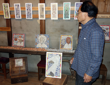 ホーロー看板の収集家として全国的に著名な、佐溝力さん(豊川市在住)の展覧会が、同時開催されています。作家は、豊川の河原の小石や、漂着物の陶器やガラス片などを集め、ローリングされ、丸みを帯びた素材を板に貼り付けて表現しています。造形作家の独創性のある作品たちをご覧ください。