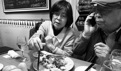 その後は、例年どおりのワインを楽しみつつ食事。場所はいつものとおり スペイン居酒屋バルデモンデ ワインと美味しい料理を食べながら、4人の話題は尽きない。今年は病気などで、参加者が減り。思えば、1年に1つ齢を重ねる年代。来年もまた。