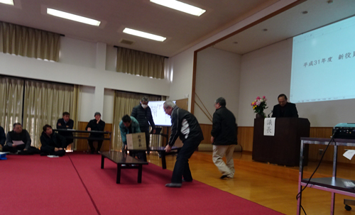 全議案承認。皆さんの最も関心のある、役員選挙も、とどこおりなく行われ、新年度役員体制が決まりました。