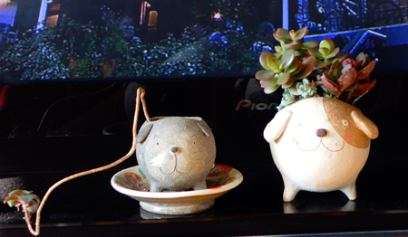 向かって右が弟、11月の無二の市で購入。 鶴田季子さんの陶芸作品です。