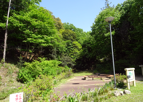 登山道の横には、本宮の湯があり。その北側は市の手取山公園。公園といっても遊具があるのではなく、散策路のある自然公園です。