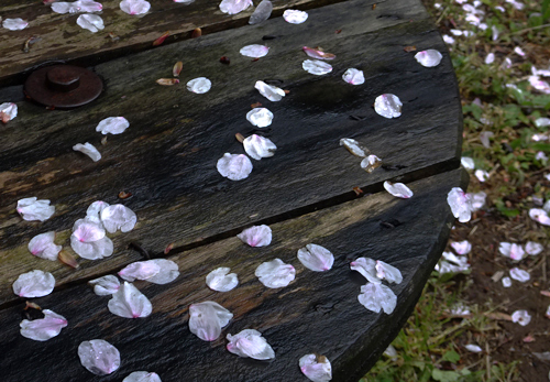 花びらが舞う時には、風があり、散った花びらの頃に雨が降るようです。昨日は、久しぶりの雨。散ったサクラ 美しいです。