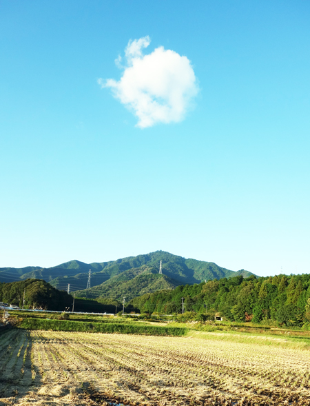 はなが散歩要求すれば、1時間散歩、空は青く、本宮山は少し紅葉。雲は丸かった。