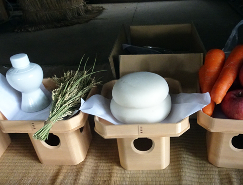 昨年同様 神事のみです。新嘗祭は、収穫を感謝し、新しい穀物を備える、宮中最大行事で、戦後は勤労感謝の日となり、祝日として引き続いています。神事の神饌(お供えもの)に、新嘗祭だけ、祭事用に陽に当てず保存した、青い稲穂があります。