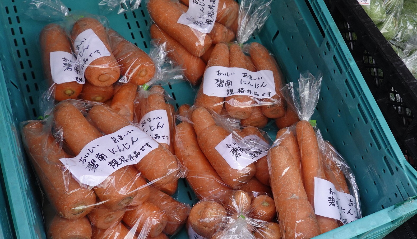 碧南にんじんを購入 愛知のブランド野菜であり、甘いので有名 おじさんに美味しそうなのをくださいと言ったら 選んでくれて 渡してくれるだけでなく、こういう形のニンジンが美味しいと楽しそうに説明してくれた 人参しりしりで食べたら柔らかく甘かった