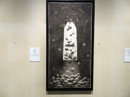 会場のどの作品も、力強く、思いが画面に出ていて圧倒されます。日本画といえ、立体的な作品もありました。