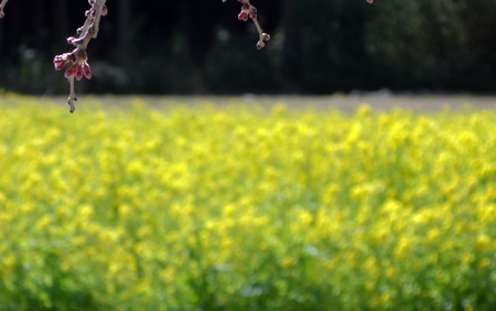菜の花の黄の帯締める農道をのたりのたりと軽トラがゆく