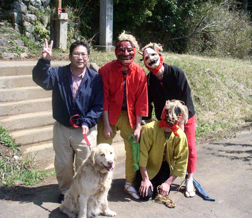 祭礼の、赤鬼 白鬼 黒鬼君と皆で、ワンショット。鬼怖がらず 頭の良い、優しいイヌでした。