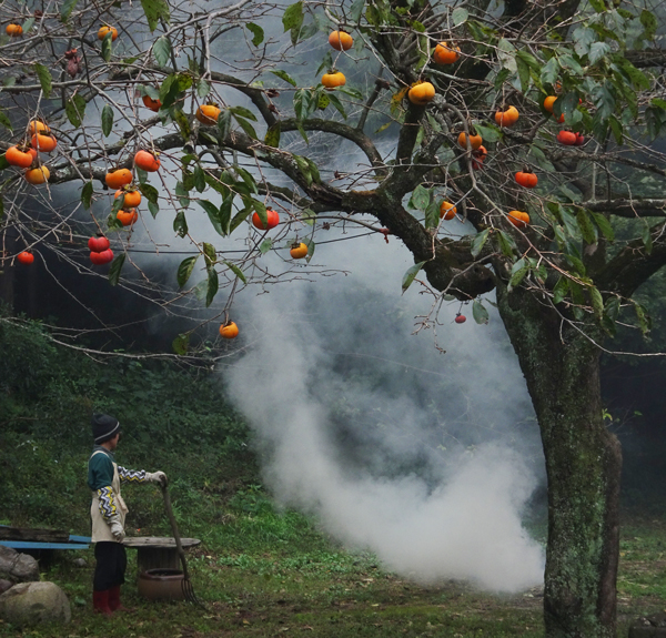 今年の同時期 夏の頃からカキも葉もない、冬景色。