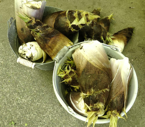 沢山採れたので、さっそく糠でゆであくを抜き お裾分け