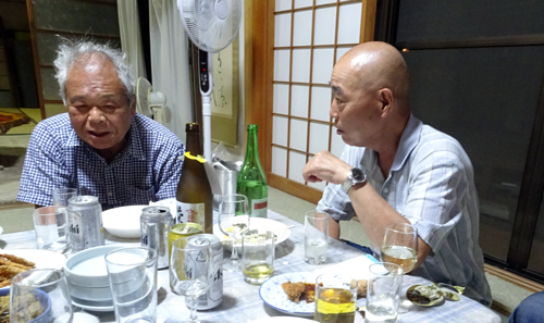食事会のお誘い。他の地区のご住職。我が家にもたびたび訪問しているので面識あり。昨日ハゼを沢山釣ったので、皆で食べましょう。いつも飲む友人と一緒ですとの事。