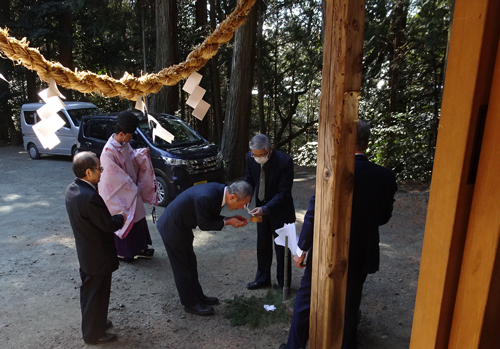 2月の行事は寒い。スーツの中には防寒対策をして、臨みます。宮司さん曰く 寒さが厳しければ、ホッカイロ貼って対策していますヨ。気持ちは、皆 同じです。今年は、暖かな日で、ホットしました。