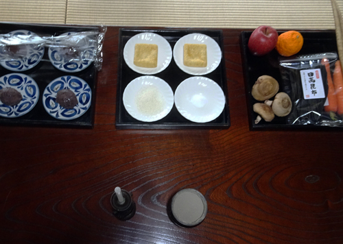 お供えは、メインにお稲荷さんといえば、油揚げ、横には奥さん手作りの、ぼた餅。甘さ控えめで美味しい。