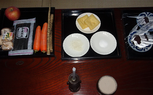小豆餡を煮てぼた餅を作り、海の物、山の物と、お米と塩。そして、油揚げが、供物の主役です。住職の家内安全、商売繁盛、そして、ご先祖様への祈りをします。そして、夫婦と子どもファミリーで和やかに会食。何十年と続いている行事ですが、いつまで続くかと感じます。